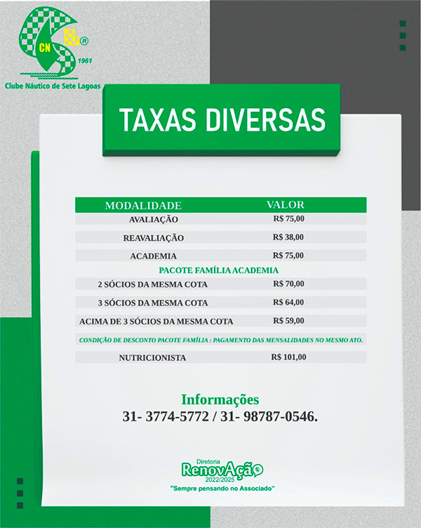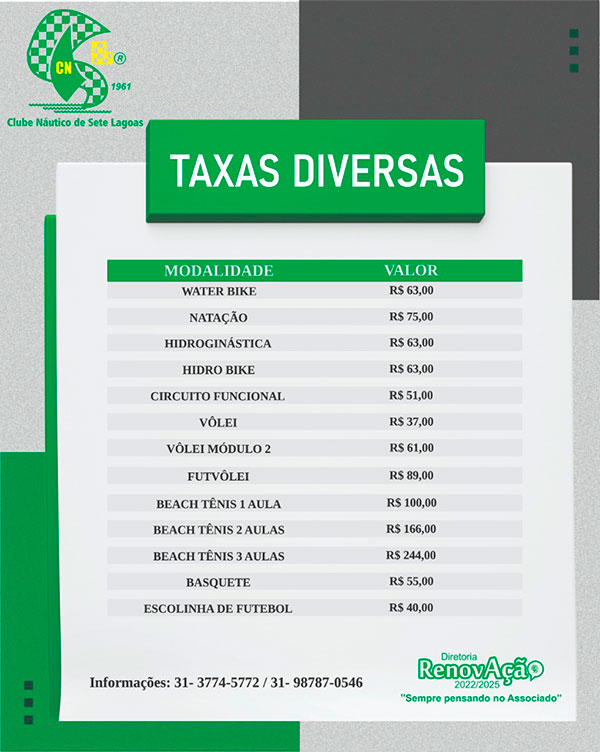 Valores de taxas diversas